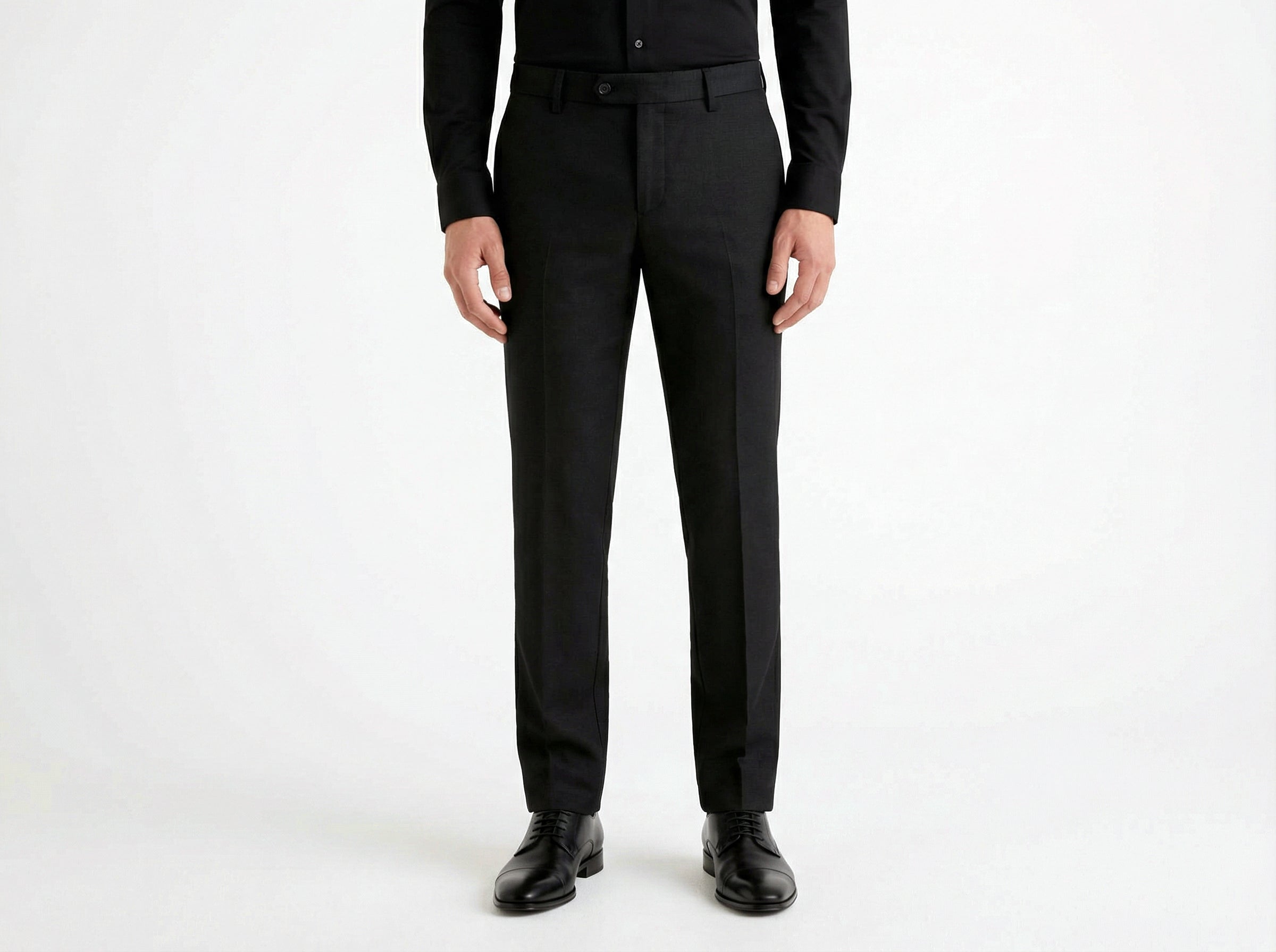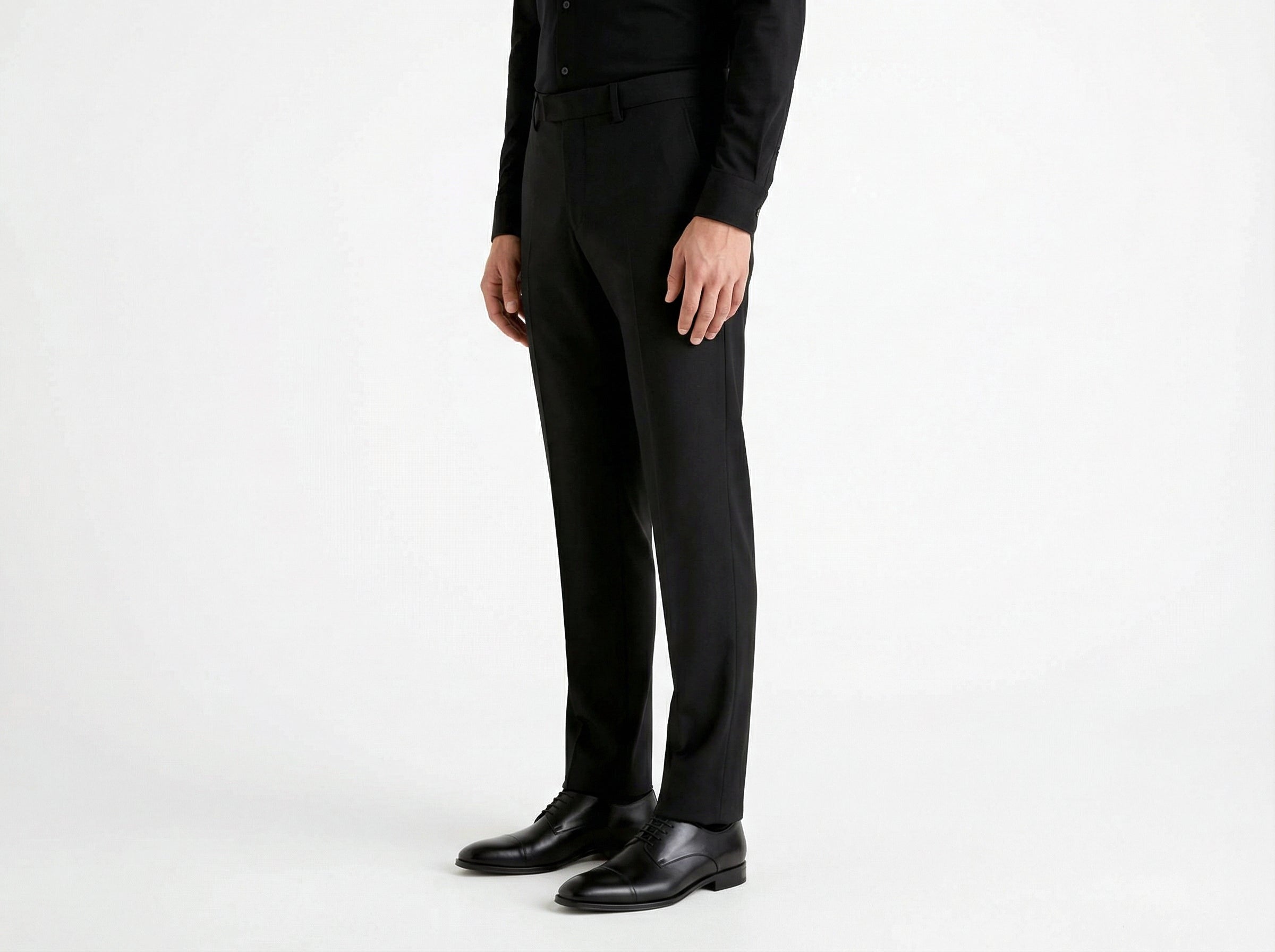 Slim cut of trousers.