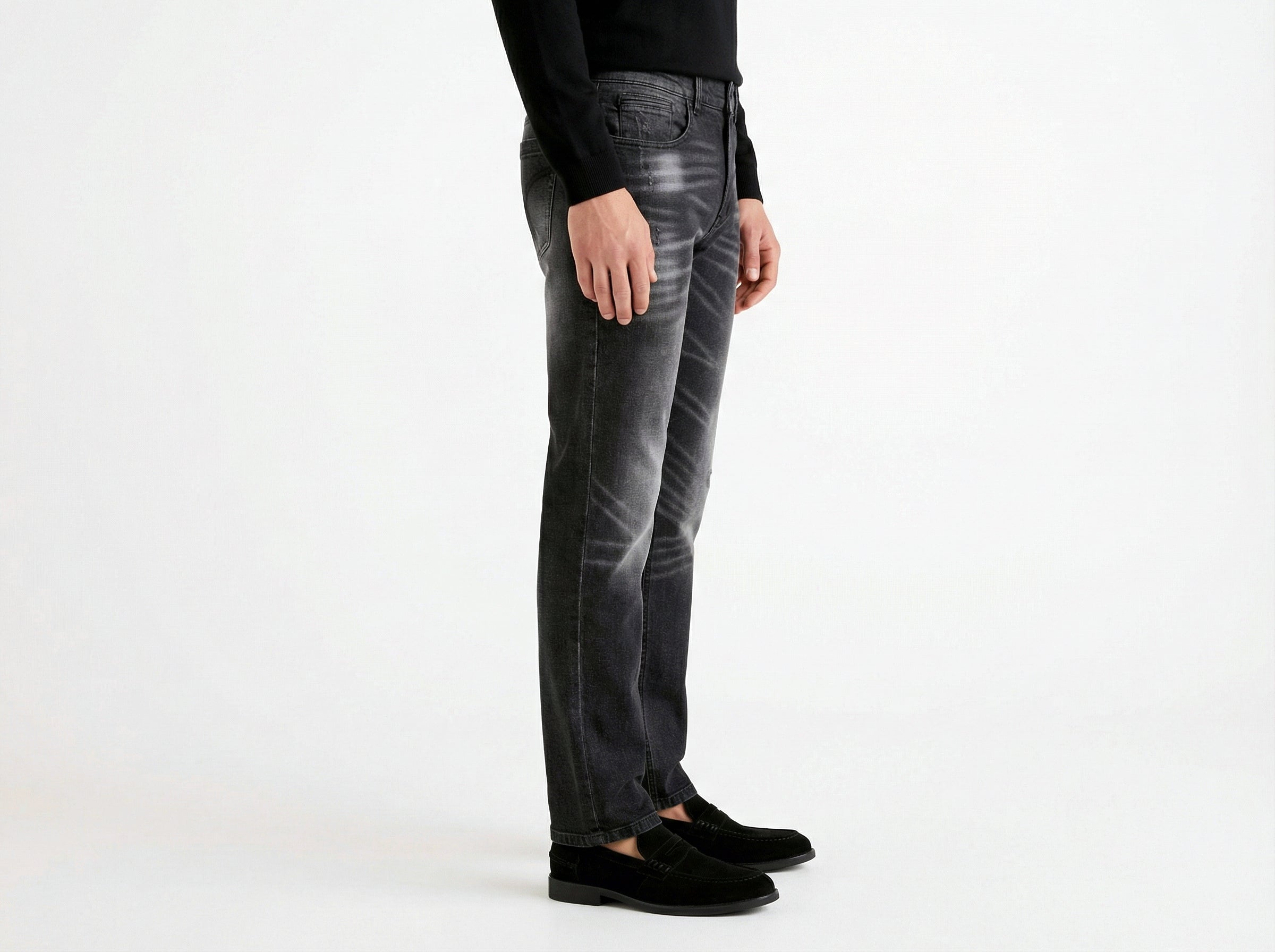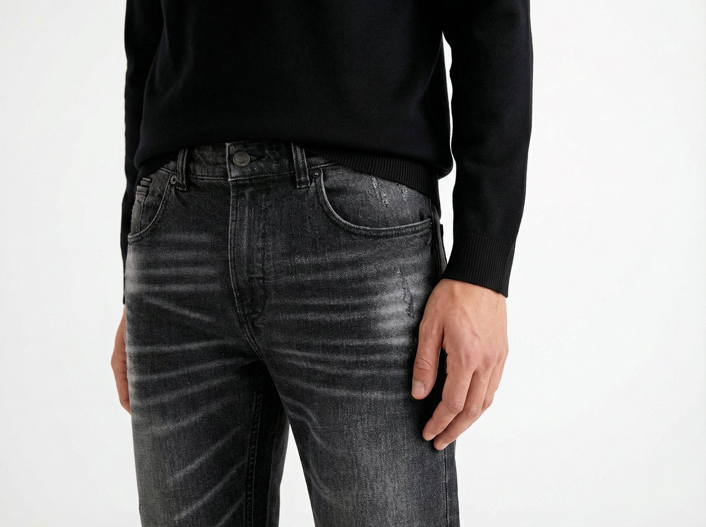 Classic slim fit with a straight leg.
